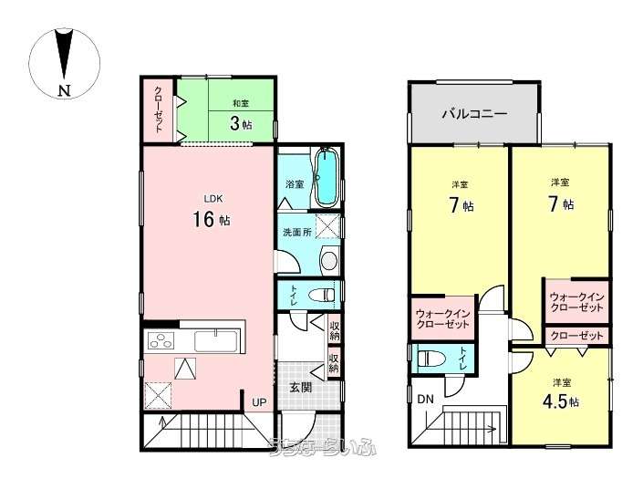 | 間取り | 3SLDK ( 洋7 洋7 洋4.5 SLDK16 ※☆タタミコーナー3帖☆ウォークインクローゼット☆インナーバルコニー付き) | ||