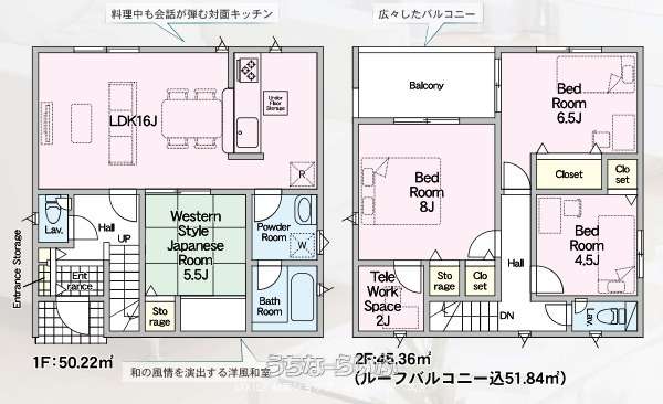 | 間取り | 4SLDK ( 洋8 洋6.5 洋4.5 和5.5 SLDK16 ※テレワークルーム・バルコニー) | ||