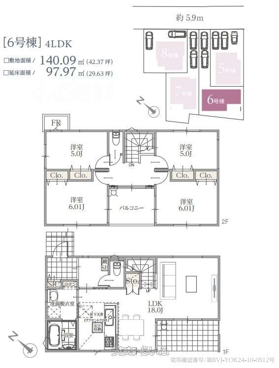 | 間取り | 4LDK ( 洋6 洋6 洋5 洋5 LDK18 ※バルコニー・シューズクローク) | ||