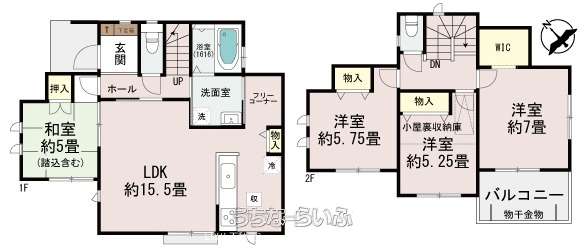 | 間取り | 4LDK ( 洋7 洋5.7 洋5.2 和5 LDK15.5 ※フリーコーナー・ウォークインクローゼット・バルコニー) | ||