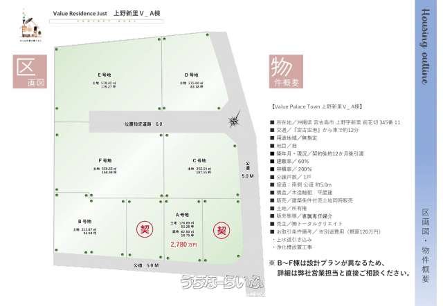 | 価格備考 | ※別途費用(概算120万円) ・上水道引き込み ・浄化槽設置工事  | ||