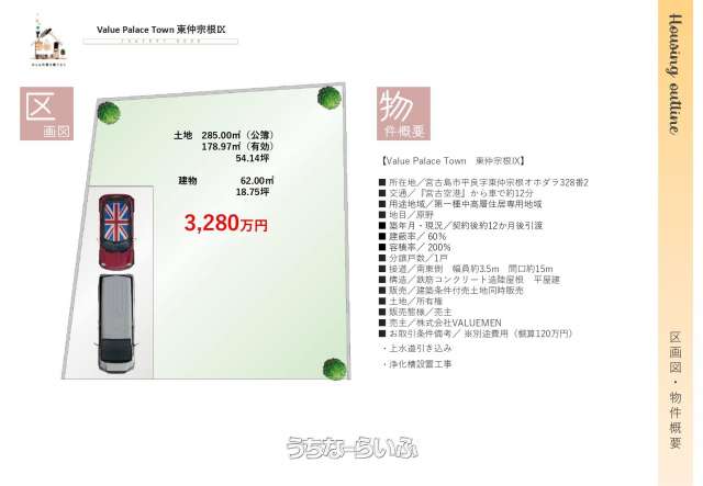 | 価格備考 | ※別途費用(概算120万円) ・上水道引き込み ・浄化槽設置工事 | ||