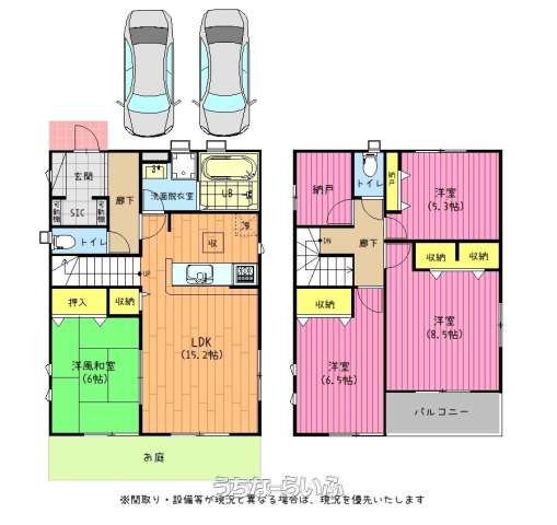 | 間取り | 4LDK ( 洋5.3 洋6.5 洋8.5 和6 LDK15.2 ※築浅物件✨ガス衣類乾燥機もあります♪エアコン2台付き♪お庭もついています!(^^)!) | ||