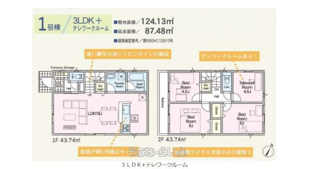 | 間取り | 3LDK ( 洋6 洋6 洋4.5 LDK18 ※オール洋間3LDK☆ 4.5帖のテレワークルームあり◎) | ||