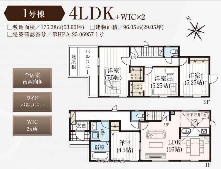 | 建物面積 | 96.05m² / 29.05坪 | 土地面積 | 175.38m² / 53.05坪 |