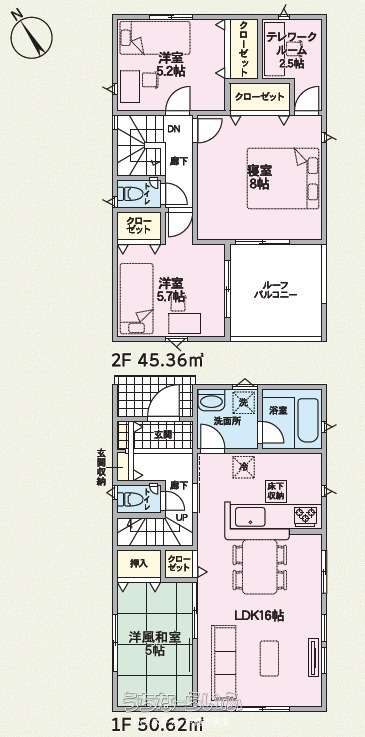 | 間取り | 4LDK ( 洋8 洋5.7 洋5.2 和5 LDK16 ※床下収納) | ||
