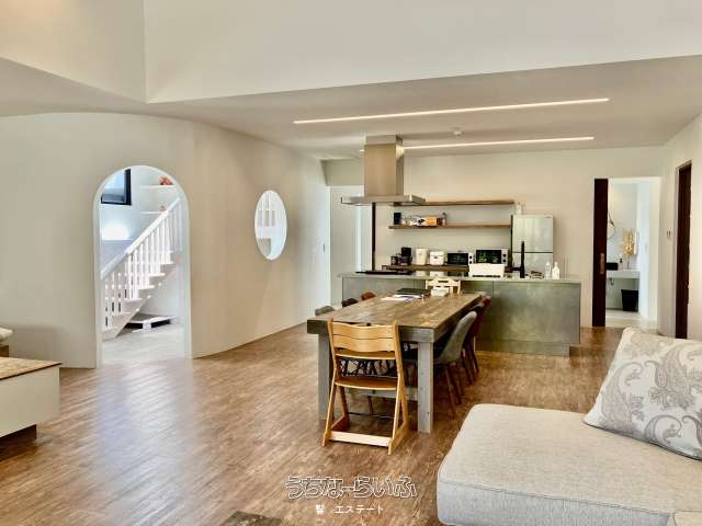 | 備考 | 天井光を取り入れた明るい室内、夜にはダウンライトで室内の雰囲気がガラッと変わりお洒落な空間へ。 家具・家電も設置されているのでそのまま運用可能です(冷暖房設備も4台完備) 滑り台・ぶらんこ付きのキッズルームやモダンな造りのお洒落な室内は大人も子供もココロオドル♪(*^^*) 沖縄本島に居ながらも離島に居るようなゆったりとした時間の流れる、浜比嘉島。 浜比嘉島には「シルミチュー」として知られるパワースポットもいくつか点在しています。 【近隣ビーチ情報】 ■浜比嘉ビーチ…徒歩23分(車で4分) ■ムルク浜ビーチ…徒歩6分(車で2分) ※建物再建築の際は景観条例により、赤瓦を使用した建物への建て替えが必要となります。 2022年1月防水塗装済(10年保証付き) ◆インスペクション検査実施済! 【注意事項】 現在は宿泊施設として稼働中の為、ご宿泊のお客様もいらっしゃいますので、現地へ行き中を見せて等、声をかけたりするのはご遠慮願います。 内覧希望の際は必ず事前に内覧予約をお願い致します。 その他資料請求や詳細確認については、響エステートまでお問い合わせください!☎098-884-7750 ■現況: 空き家 |
