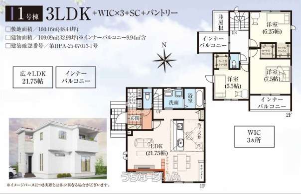 | 建物面積 | 109.09m² / 32.99坪 | 土地面積 | 160.16m² / 48.44坪 |