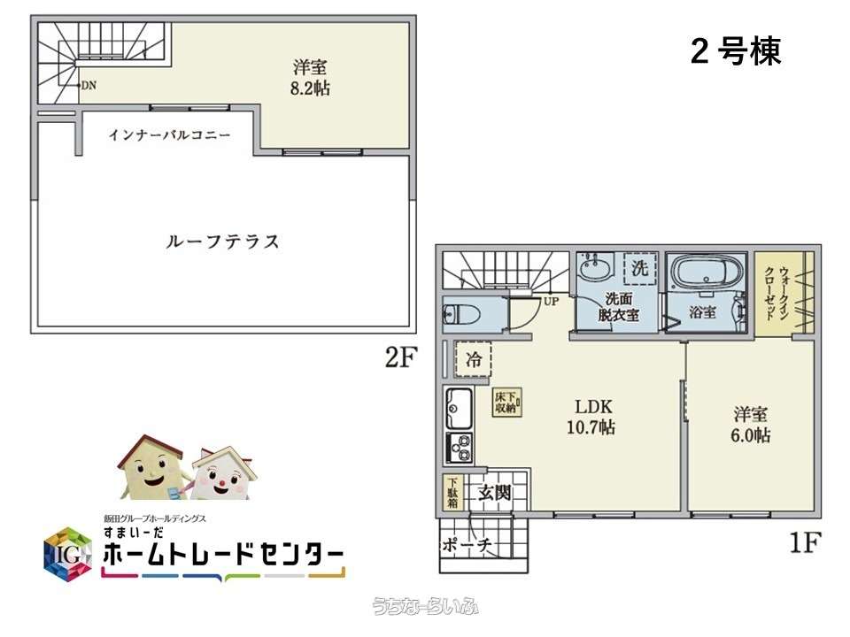 | 間取り | 2LDK ( 洋6 洋8.2 LDK10.7 ※WIC・ルーフテラス) | ||