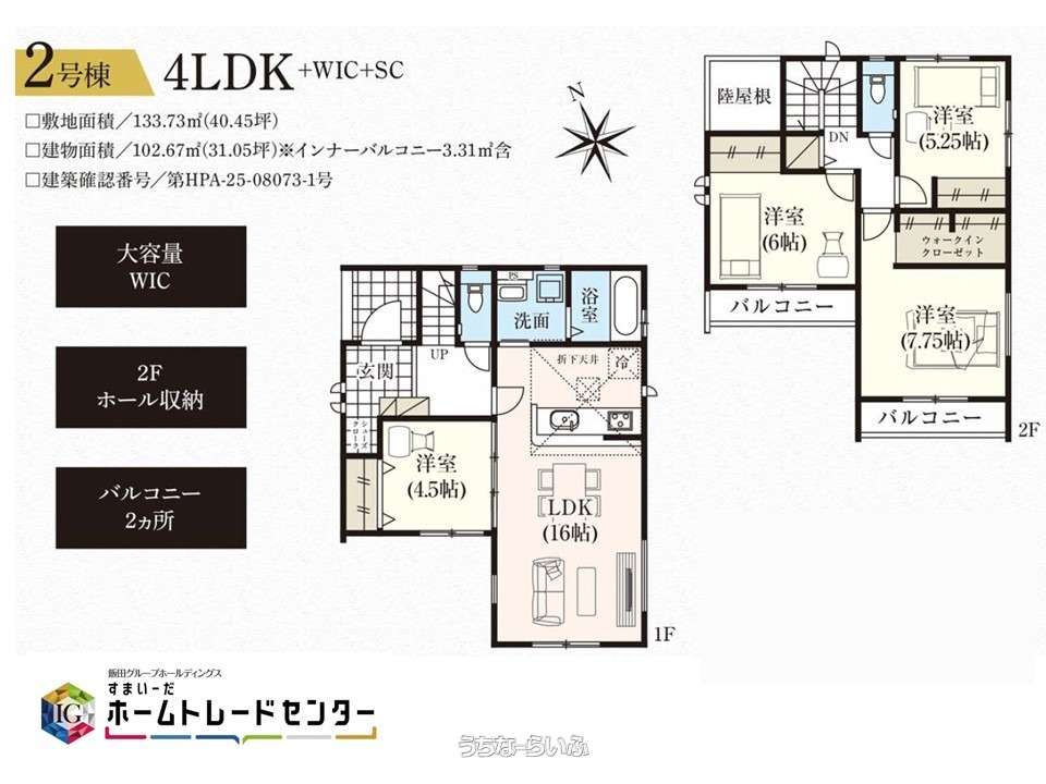 | 収納 | ウォークインクローゼット 、 シューズインクローク 、 シューズボックス 、 床下収納 、 全居室収納 |