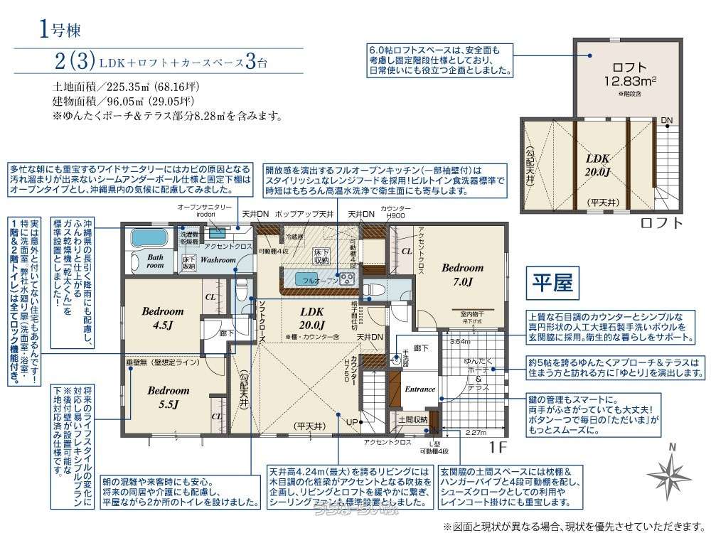 | 建物面積 | 96.05m² / 29.05坪 | 土地面積 | 225.35m² / 68.16坪 |