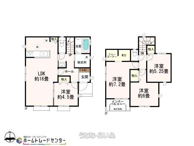 | 間取り | 4LDK ( 洋4.5 洋5.2 洋6 洋7.2 LDK16 ※WIC・インナーバルコニー・フリースペース) | ||
