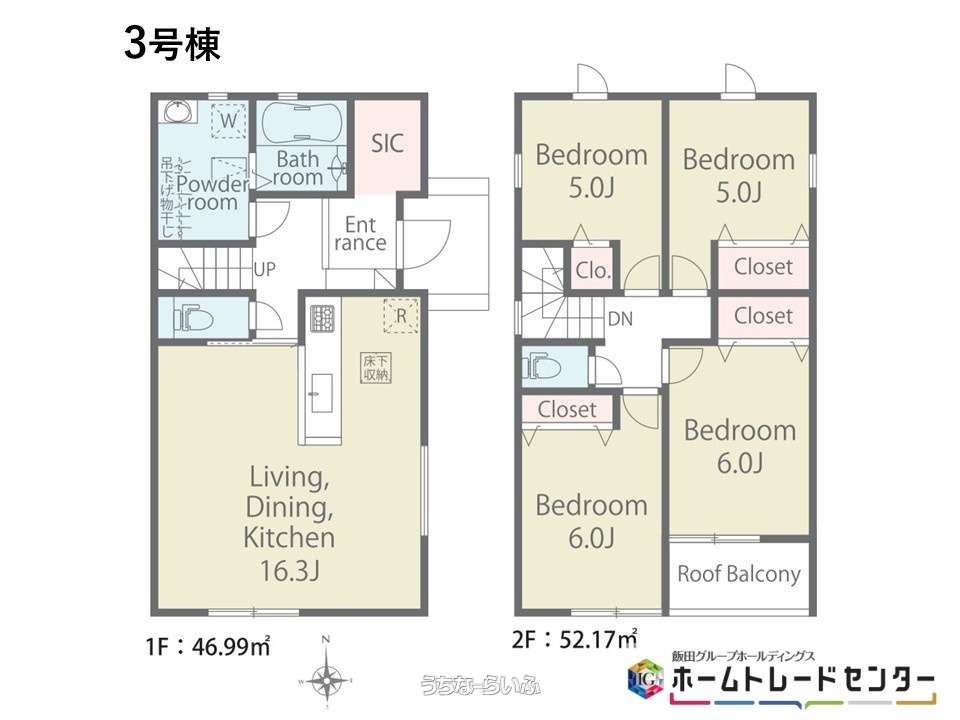 | 間取り | 4LDK ( 洋6 洋6 洋5 洋5 LDK16.3 ※SIC・床下収納・全居室収納・ルーフバルコニー) | ||