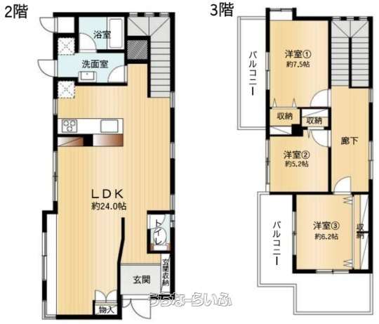 | 間取り | 3LDK ( 洋7.5 洋6.2 洋5.2 LDK24) | ||