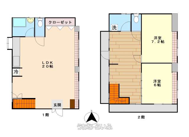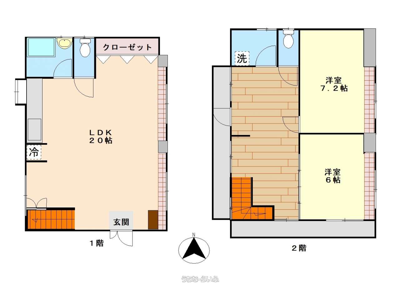 | 間取り | 2LDK ( 洋6 洋7.2 LDK20 ※1・2階にバストイレ有り) | ||
