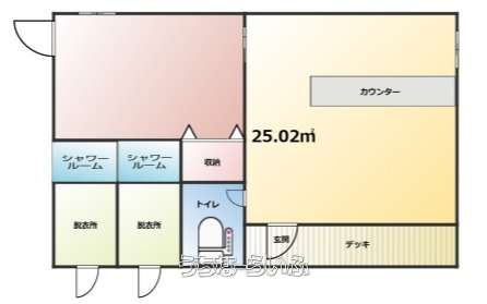 | 間取り備考 | 1LDK、カウンター、キッチン、シャワールーム2室、デッキ、 | ||