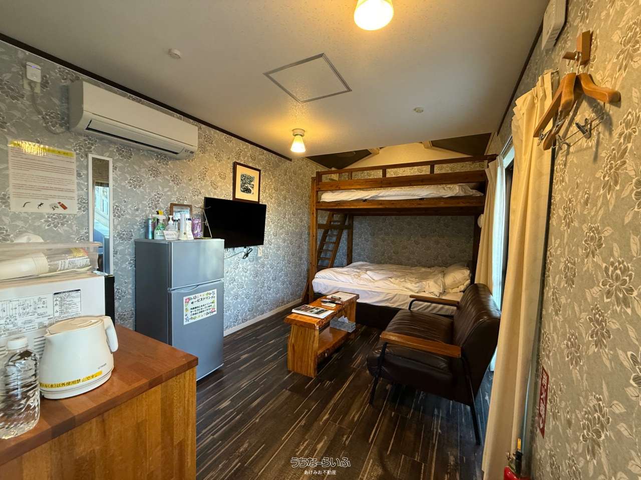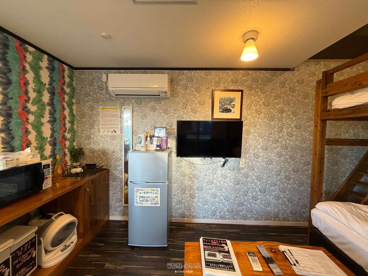 | 内装・設備 | エアコン (冷暖房あり) 、 冷房 (クーラー) 、 トイレ 、 温水洗浄便座 、 敷地内ゴミ置き場 、 冷蔵庫 、 テレビ |