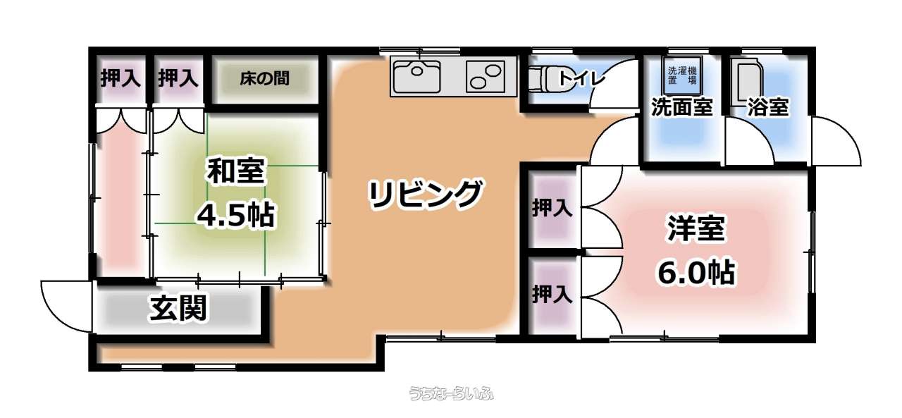 | 間取り備考 | 2DK(リビング8帖・洋室6帖・和室4.5帖) | ||