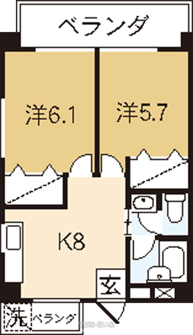 間取り | 2LDK ( 洋6.1 洋5.7 LDK8) | ||