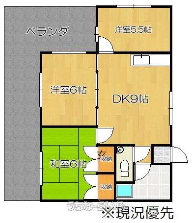 | 間取り | 3LDK ( 洋5.5 和6 和6 LDK9) | ||