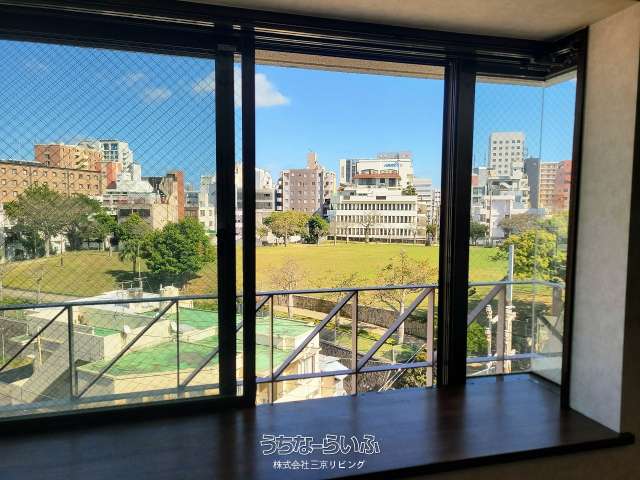 ハイグレード賃貸マンション、3面ベランダでとにかく窓が多く採光・通風良好♪公園が目の前で緑豊かな静かな環境、エアコン4台付き!
