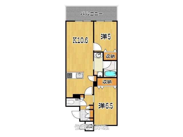 | 間取り | 2LDK ( 洋6.5 洋5 LDK10.6) | ||