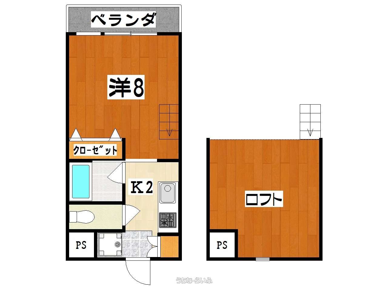 | 間取り | 1K ( 洋8 K2 ※写真は別部屋を参照しております。予めご了承下さい。) | ||