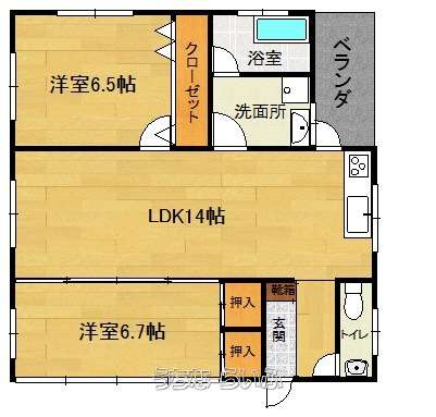 | 間取り | 2LDK ( 洋6.5 洋6.7 LDK14) | ||