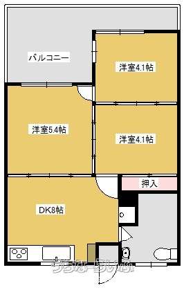 | 間取り | 3DK ( 洋4.1 洋4.1 洋5.4 DK8) | ||