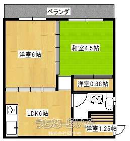 | 間取り | 2DK ( 洋6 和4.5 DK6) | ||
