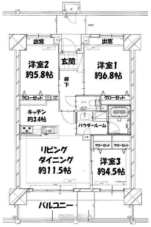 | 間取り | 3LDK ( 洋6.8 洋5.8 洋5.2 LDK14.9) | ||