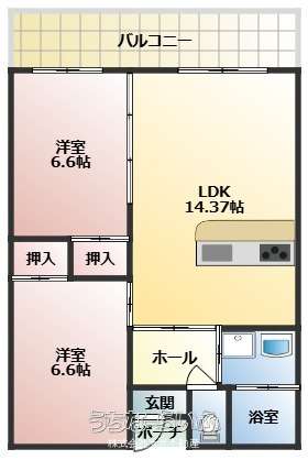 | 間取り | 2LDK ( 洋6.6 洋6.6 LDK14.3) | ||