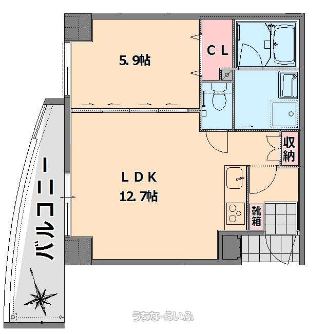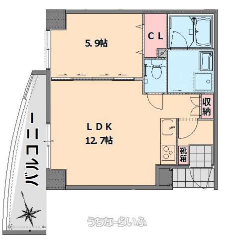 | 間取り | 1LDK ( 洋5.9 LDK12.7) | ||