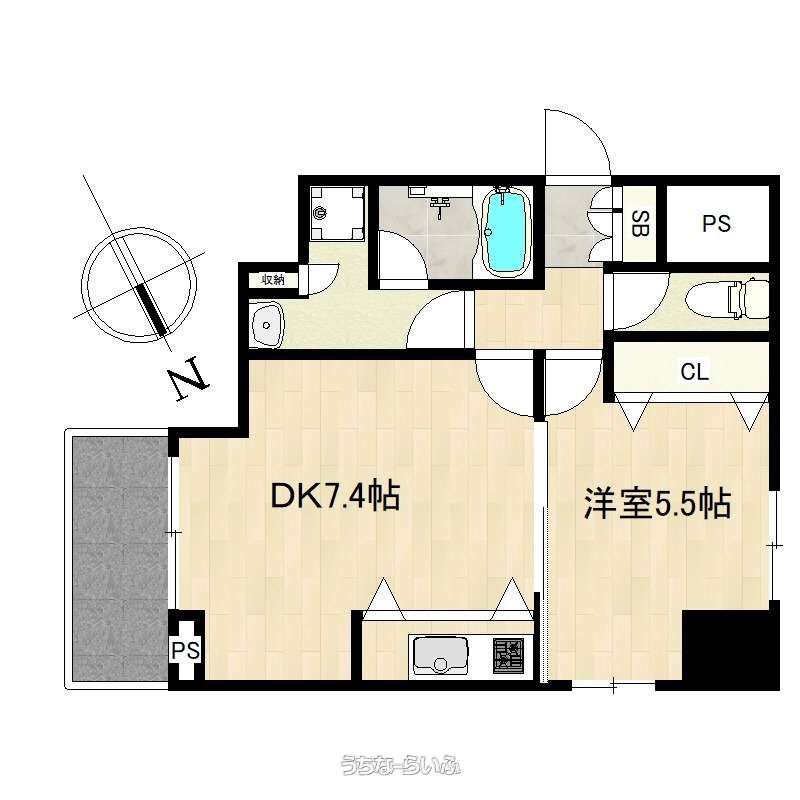 | 間取り | 1DK ( 洋4.5 DK7.4) | ||