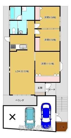 | 間取り | 3LDK ( 洋11.5 洋6.5 洋6.5 LDK22.2) | ||