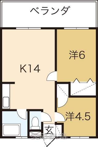 | 間取り | 2LDK ( 洋6 洋4.5 LDK14) | ||