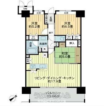 | 間取り | 3LDK ( 洋5.2 洋6.5 和5 LDK17.9) | ||