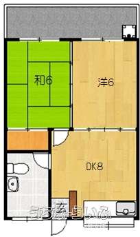 | 間取り | 2DK ( 洋6 和6 DK8) | ||