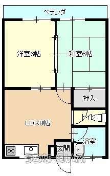 | 間取り | 2DK ( 洋6 和6 DK8) | ||