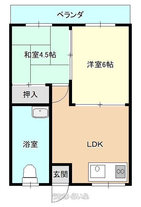 | 間取り | 2DK ( 洋6 和4.5 DK6) | ||