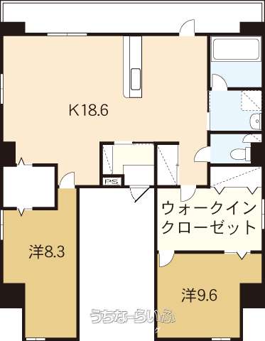 | 間取り | 2LDK ( 洋9.6 洋8.3 LDK18.6) | ||