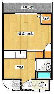 | 間取り | 1K ( 洋7.5 K3) | ||