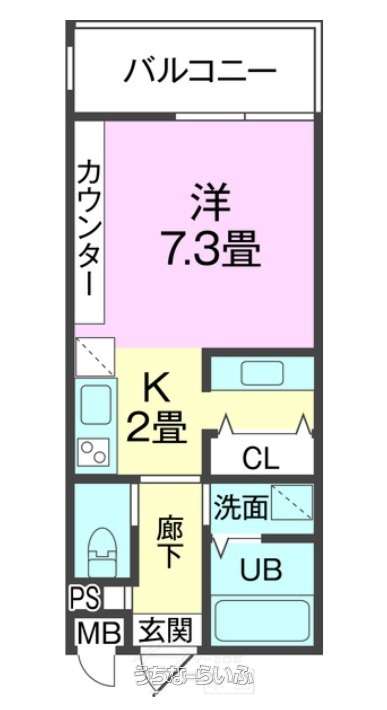 | 間取り | 1K ( 洋7.3 K2) | ||