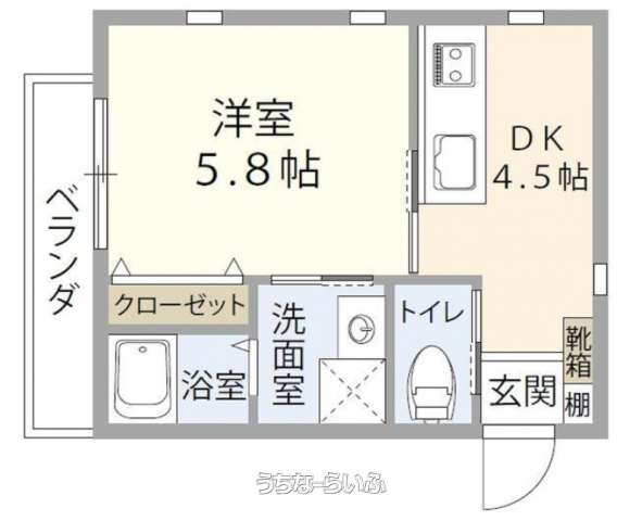 | 間取り | 1DK ( 洋5.8 DK4.5) | ||