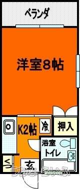 | 間取り | 1K ( 洋8 K2) | ||