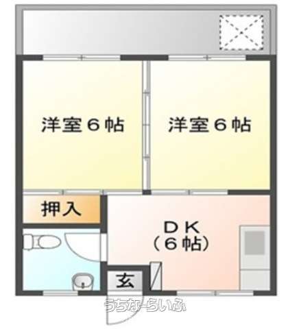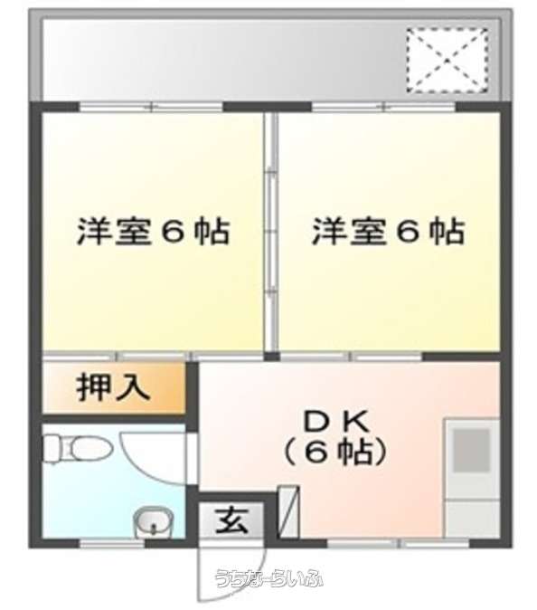 | 間取り | 2DK ( 洋6 洋6 DK6) | ||