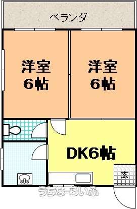 | 間取り | 2DK ( 洋4.5 洋6 DK6) | ||