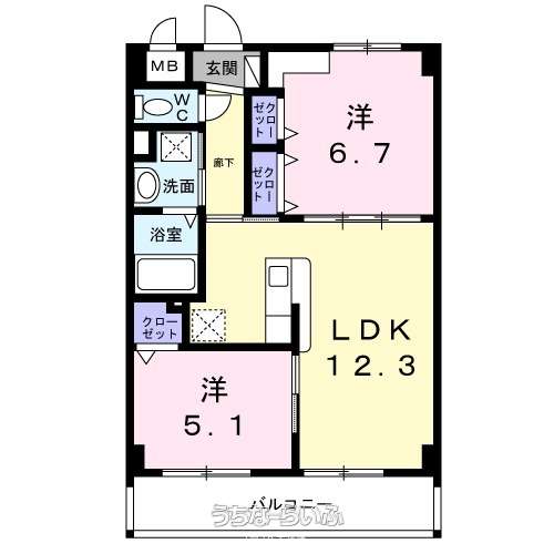 | 間取り | 2LDK ( 洋5.1 洋6.7 LDK12.3) | ||