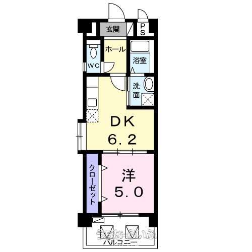 | 間取り | 1DK ( 洋5 DK6.2 ※バストイレ別・エアコン・2口ガスコンロ・浴室乾燥機・室内洗濯機置き場) | ||