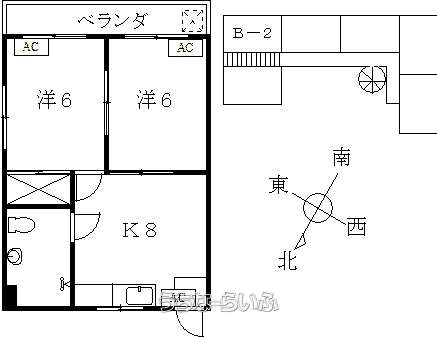 | 部屋番号 | B-2号 | 所在階/階数 | 2階 (3階建) |